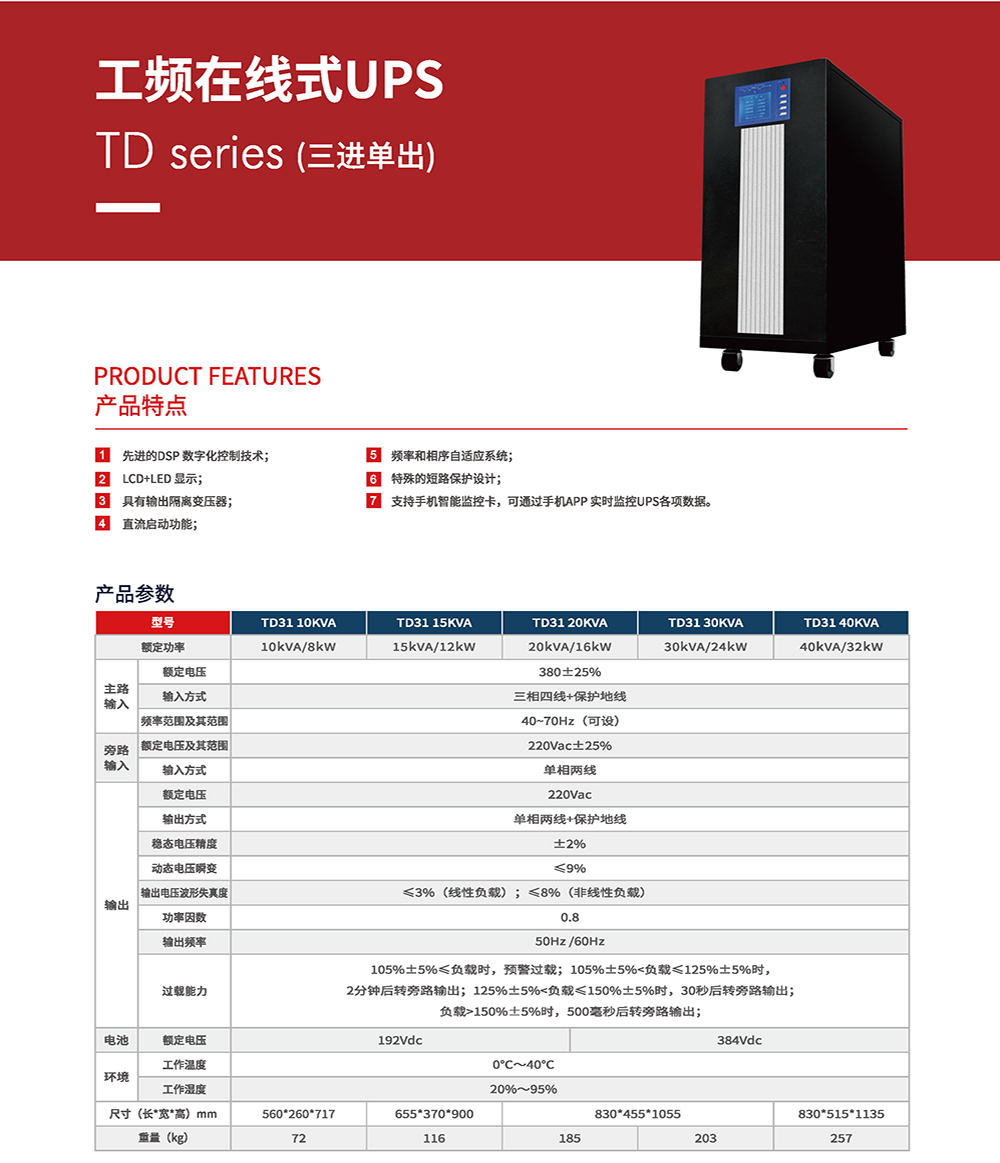 工频三进单出ups电源 TD31 10-40KVA